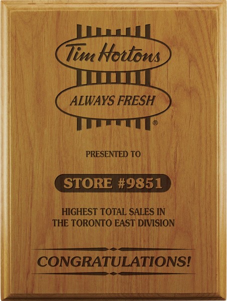 A Variety of wood plaques are available that can be laser etched with your message, Logo or photograph.